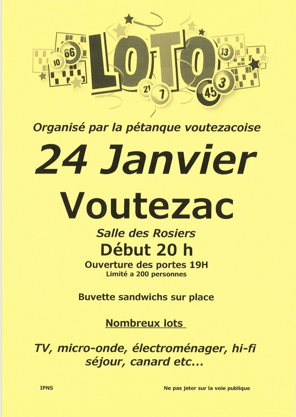 Samedi soir Loto organisé la pétanque Voutezacoise