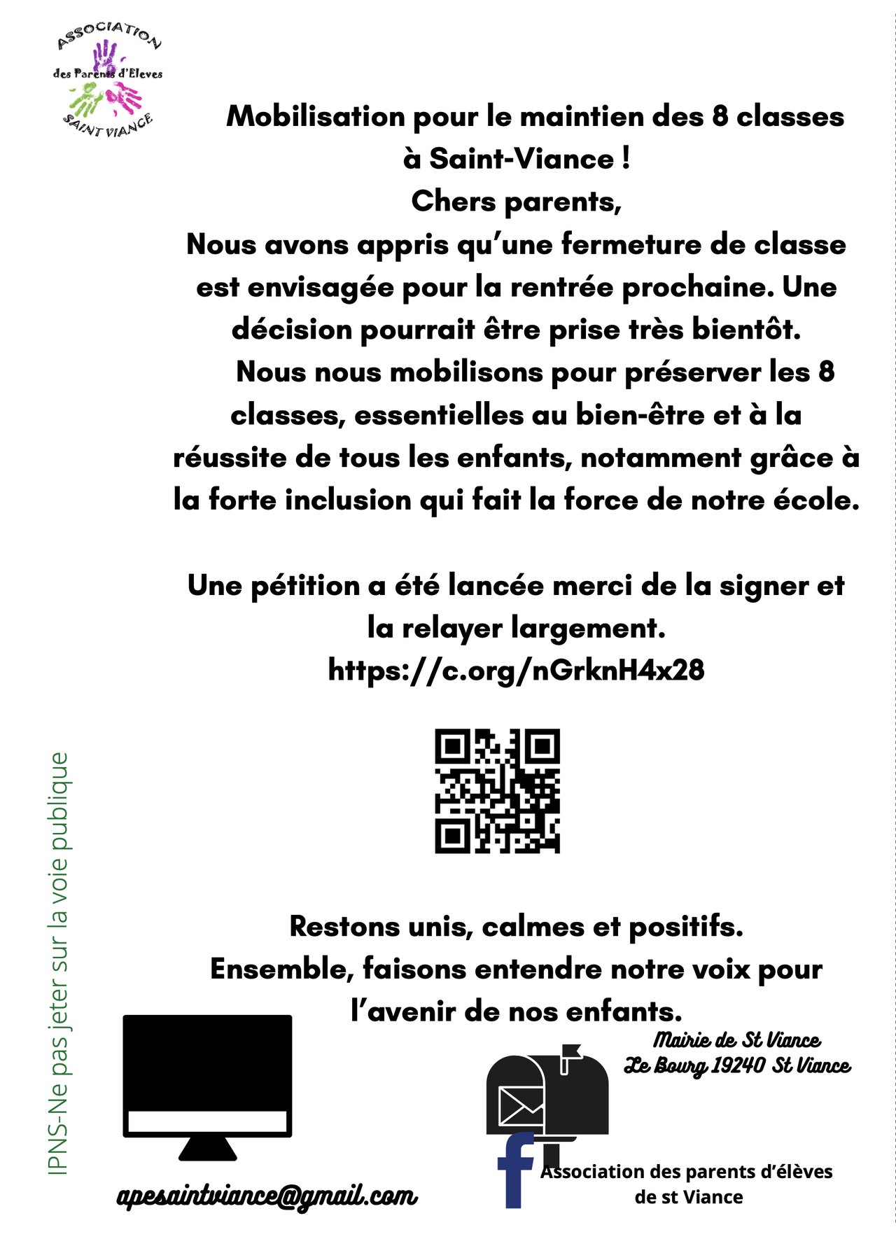 Mobilisation pour le maintien des 8 classes à Saint-Viance !